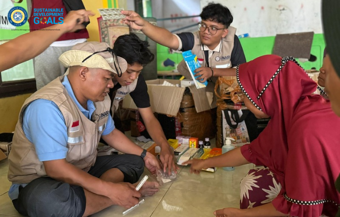 Tim medis juga melakukan tindakan perawatan luka (wound care) pada satu kasus spesifik, yakni warga yang mengalami luka tertusuk duri kelapa sawit. Mengingat risiko infeksi yang tinggi dari duri sawit di lingkungan lembap, penanganan sterilisasi dilakukan dengan hati-hati untuk mencegah komplikasi lebih lanjut. Kehadiran Tim FKp Unair di Desa Tenggulun bukan sekadar bantuan medis semata, melainkan wujud nyata dari implementasi Sustainable Development Goals (SDGs) di daerah bencana: